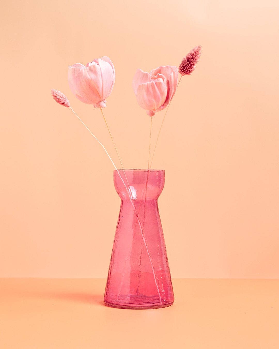 A mini glass vase offers a sleek and elegant design, perfect for showcasing small flowers or decorative accents. Its compact size and transparent finish make it a versatile accessory for any space.