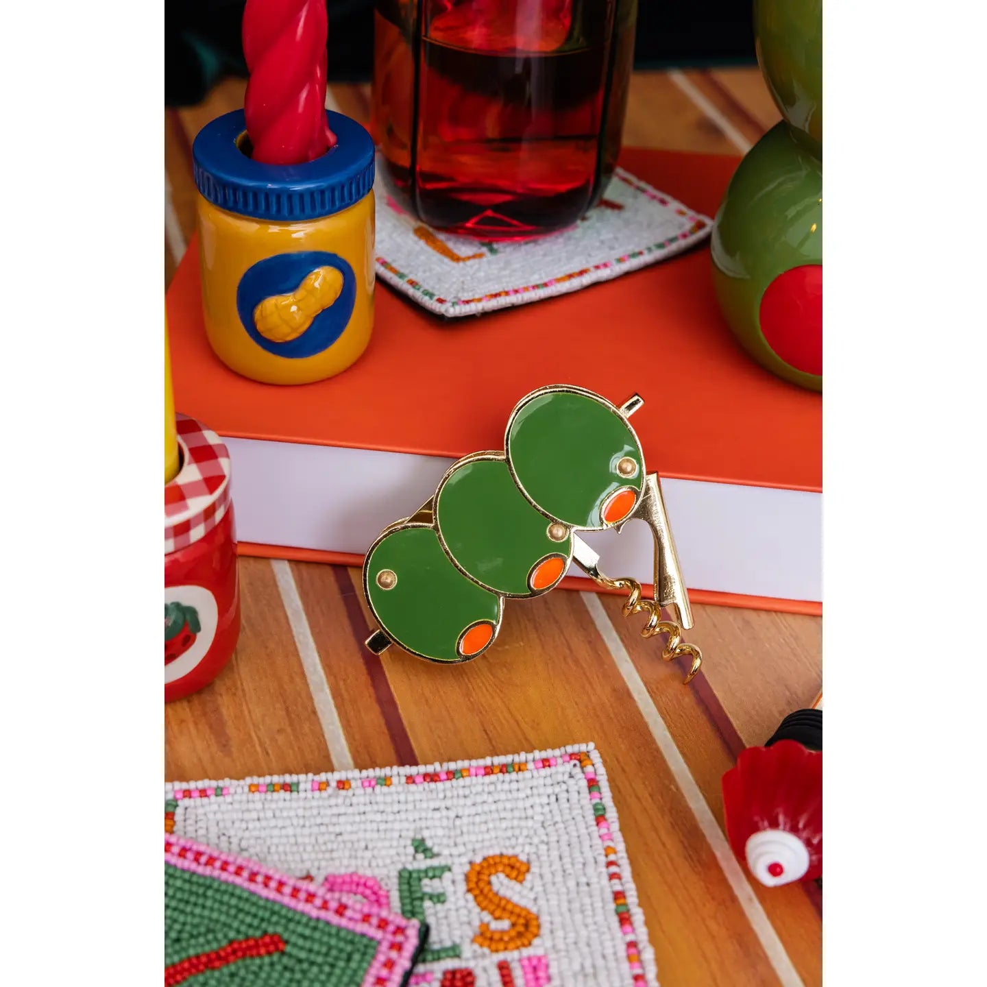 You’ll want to keep this one out of the drawer and on display 24/7. This corkscrew features a fun stacked olive design and also comes with a bottle opener.