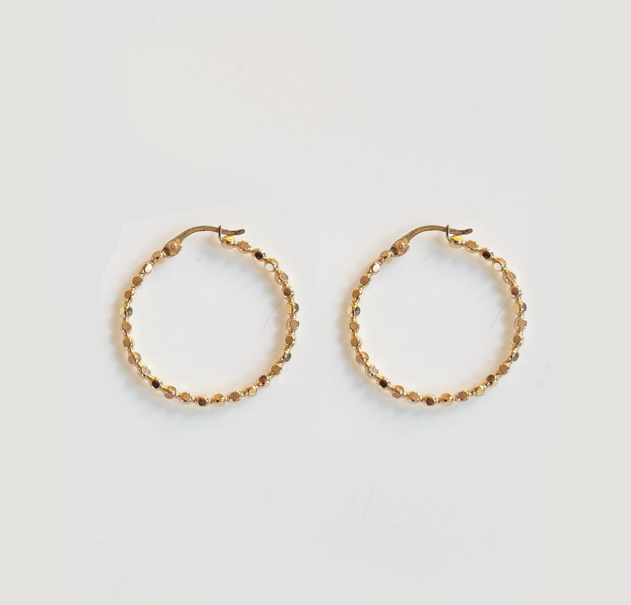 Our Beaded Hoops from Selah Vie come in two sizes: small (1/2") and medium (3/4"). Designed with the modern bohemian in mind, these earrings exhibit Selah Michelle's love for gemology and metals, resulting in a unique blend of edgy, everyday elegance. Each hoop is meticulously handcrafted, embodying the spirit of Selah Vie's commitment to quality and style. These earrings are more than just accessories; they're a reflection of everyday elegance.