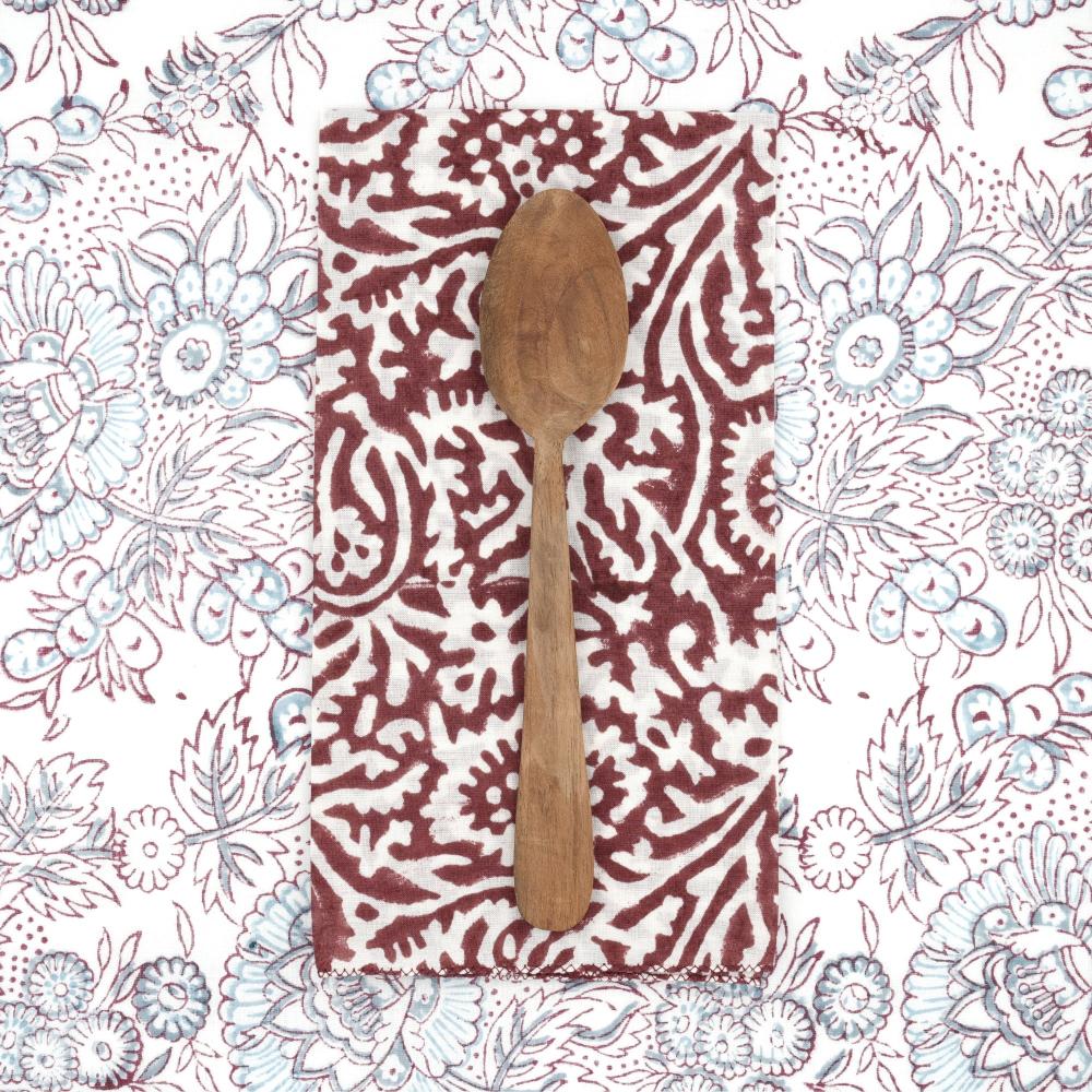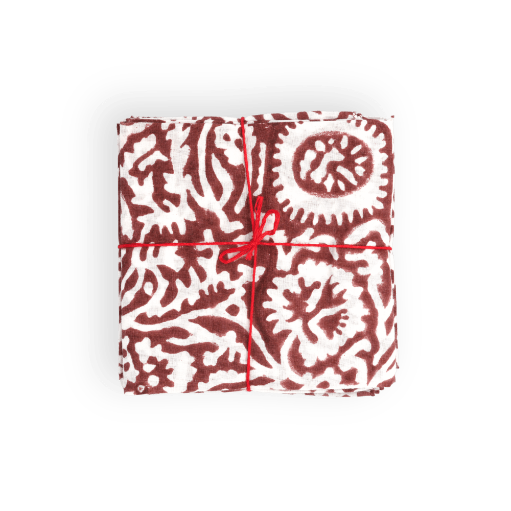 In a small set of 4, linked and made from upcycled fabrics. Survivors from the bottom of drawers, gleaned from the ends of rolls, sleeping in the corner of workshops, saved from the mountain of oblivion. For beauty, without wasting paper napkins. We do not use plastic and even the packaging is made from recycled materials.  A note to dress up the muted tones, illuminate the similar services, the snowy houses, a dot of whipped cream on the tip of a nose.