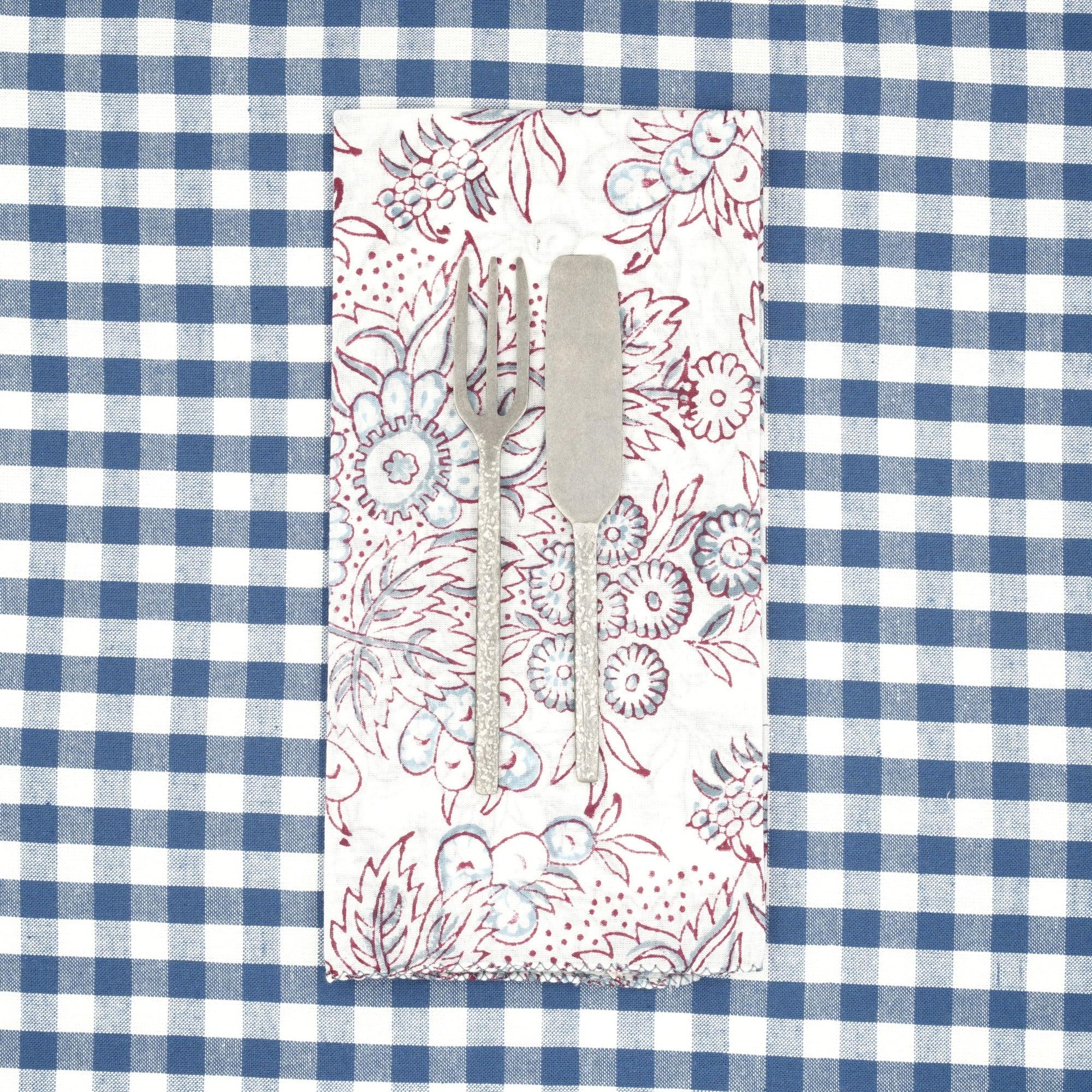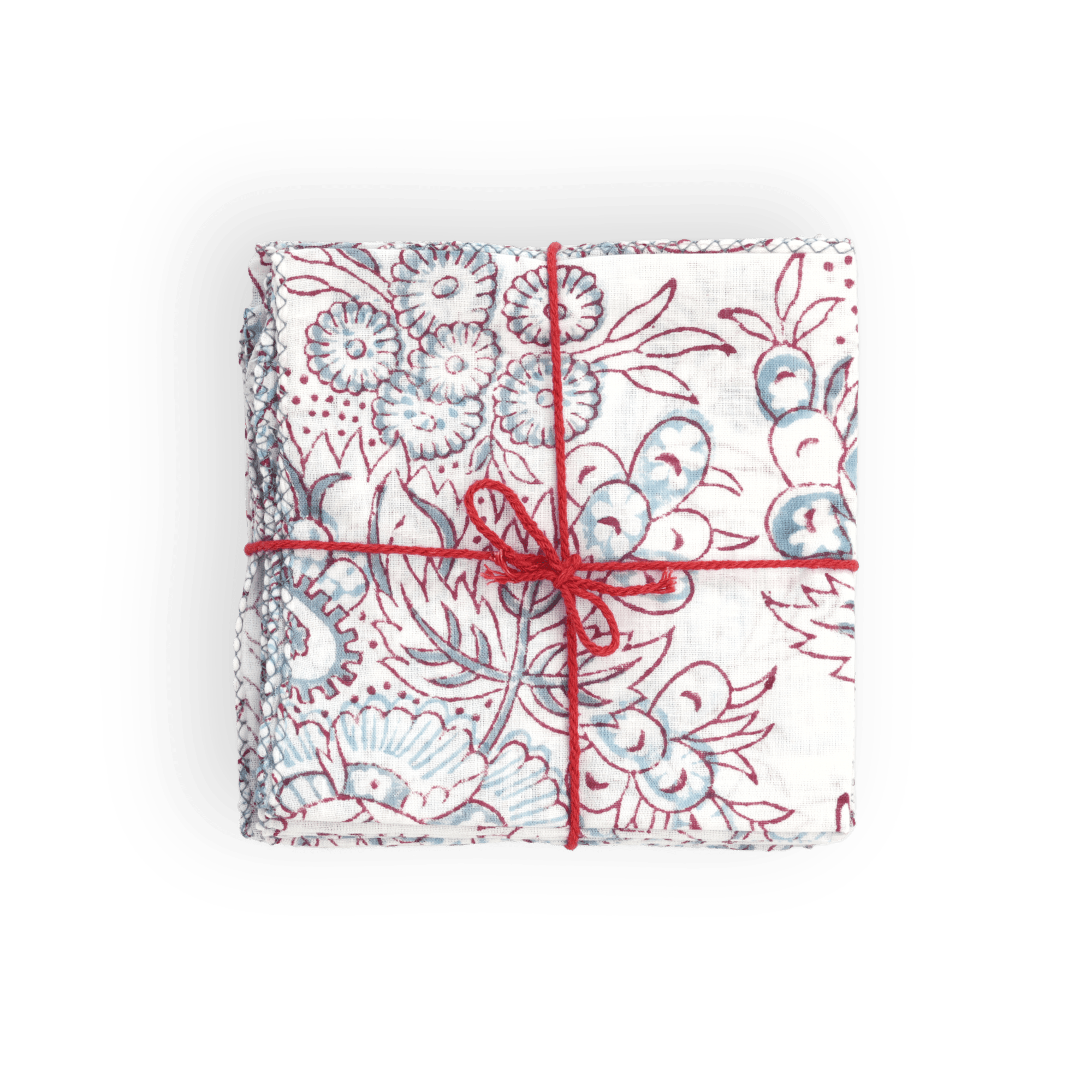 In a small set of 4, linked and made from upcycled fabrics. Survivors from the bottom of drawers, gleaned from the ends of rolls, sleeping in the corner of workshops, saved from the mountain of oblivion. For beauty, without wasting paper napkins. We do not use plastic and even the packaging is made from recycled materials.  A note to dress up the muted tones, illuminate the similar services, the snowy houses, a dot of whipped cream on the tip of a nose.