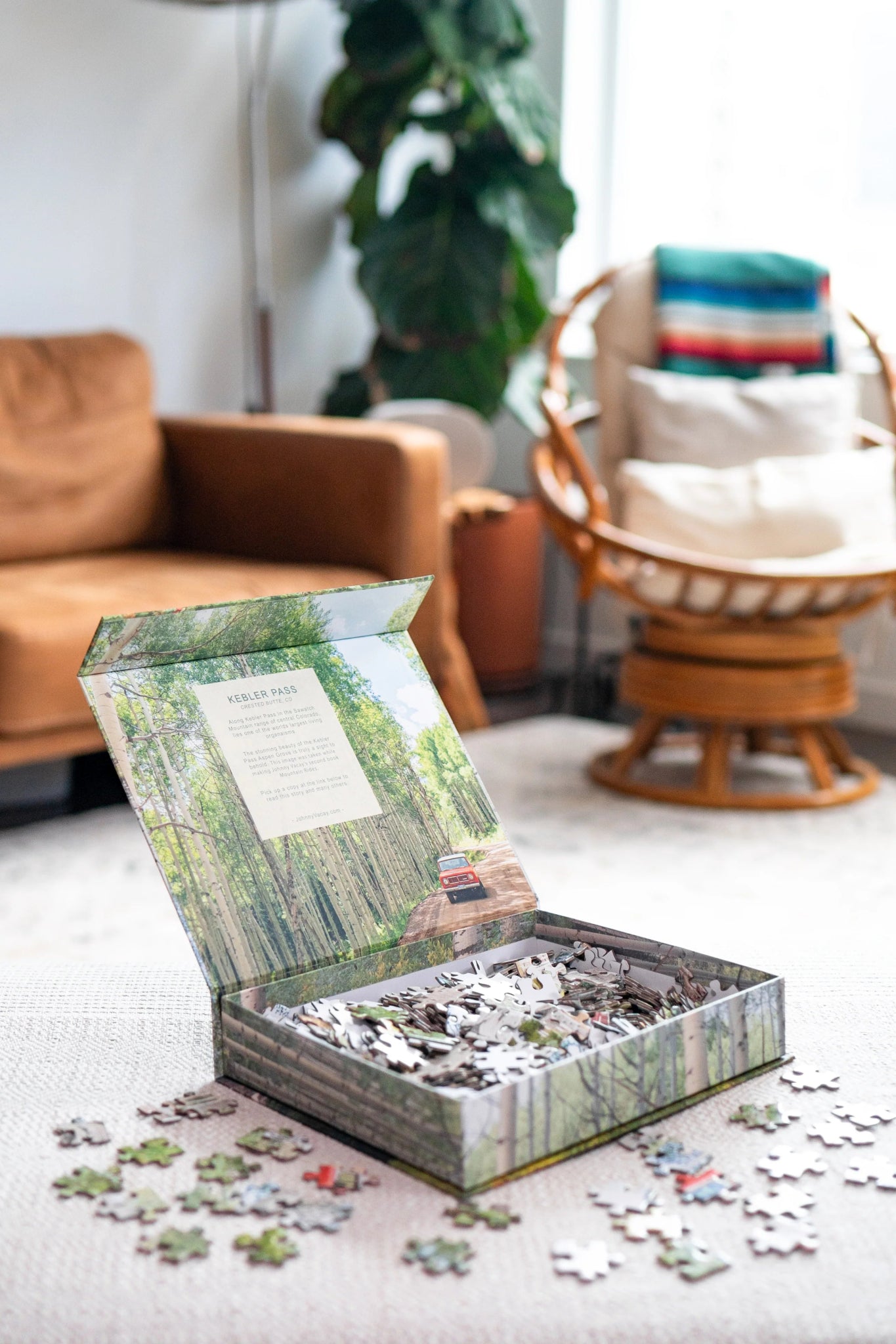 Get ready to take a ride with the Aspen Scout Puzzle, a 500 piece puzzle that features stunning photography from our best selling book Mountain Rides. This high end puzzle is perfect for those who love a challenge and appreciate beautiful art. With its sturdy pieces and vibrant colors, this puzzle is sure to provide hours of entertainment for puzzle enthusiasts of all levels.
