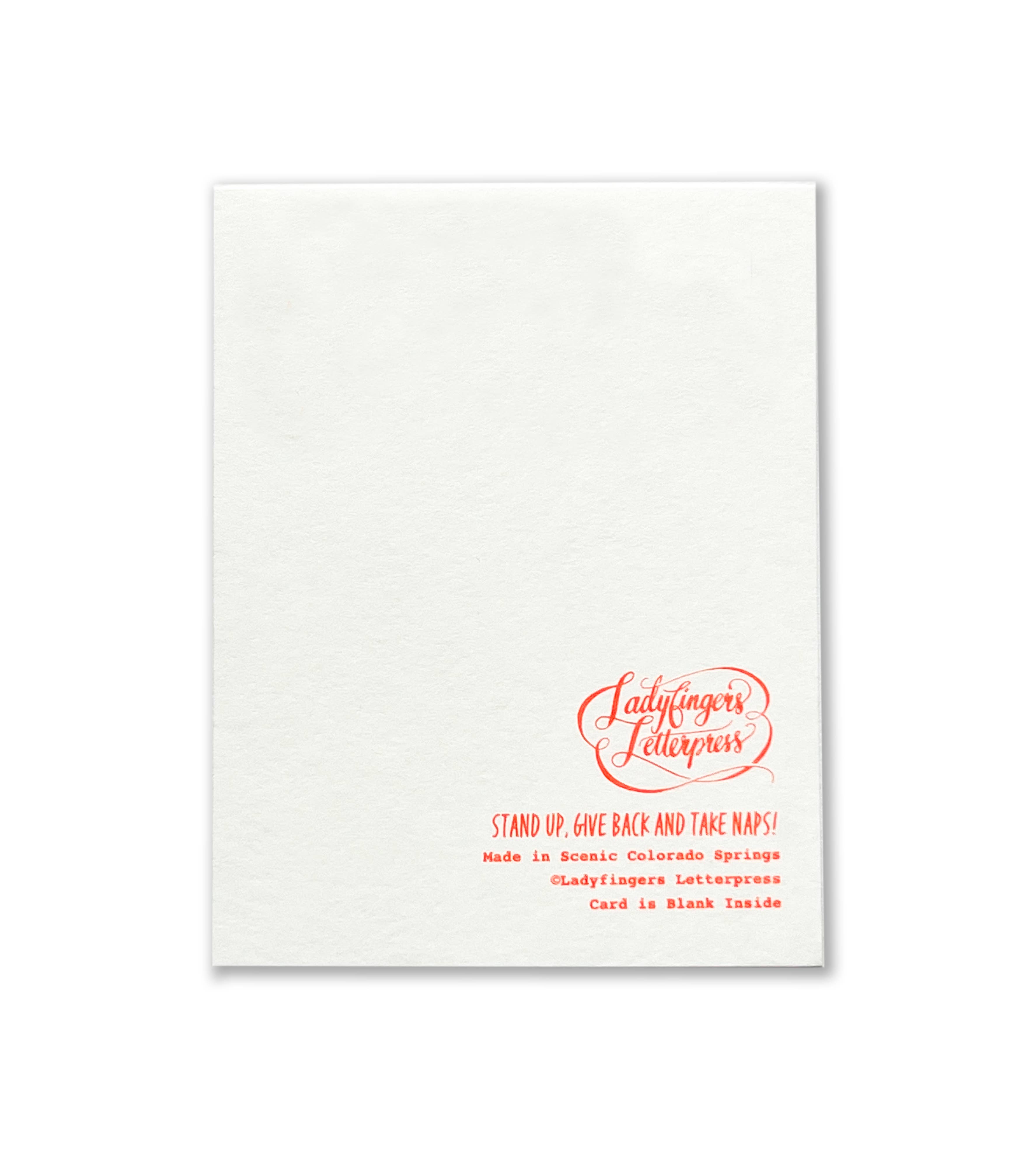 Award-winning Ladyfingers Letterpress is an LGBTQ+ owned-and-operated stationery & gift brand based in Colorado Springs.  A2 Size (4.25” x 5.5”) Includes envelope Blank inside Packaged in a Clear Sleeve.