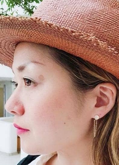 Gemstone Chain Earrings hang approximately 1 1/2" long. 6mm gemstones set in 14k gold filled bezels with hanging chain. Available in labradorite and moonstone.